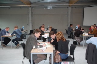 Bij experts-ter-zake was het veelal aanschuiven maar toch konden we tussendoor horen van Chris Nauwynck, die mensen bijstond die van plan zijn een zaak over te nemen, dat het daarbij vooral zaak is je goed te laten bijstaan, omdat er rond overnames veelonwetendheid heerst en mensen dan zeer belangrijke zaken dreigen uit het oog te verkiezen. De kandidaat starters bleken overigens niet allemaal 'kandidaat' te zijn. Sommigen waren al zelfstandig, maar hadden dan bijvoorbeeld bijstand nodig wanneer de kleine zaak plots meer dan gepland groeit, want de mindere economische tijden blijken niet overal voelbaar...